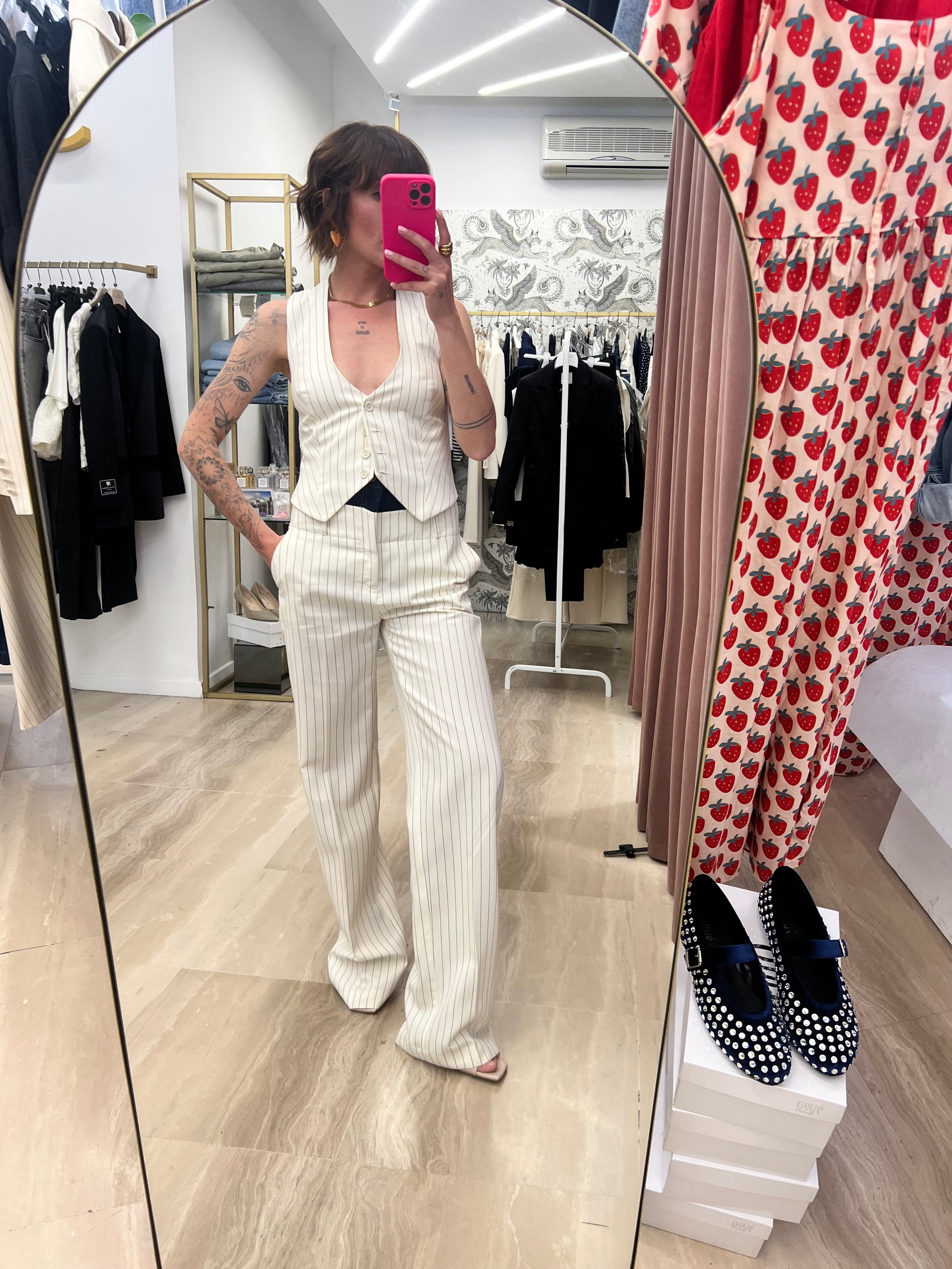Gilet gessato con bottoni sul davanti. Vestibilità regolare.